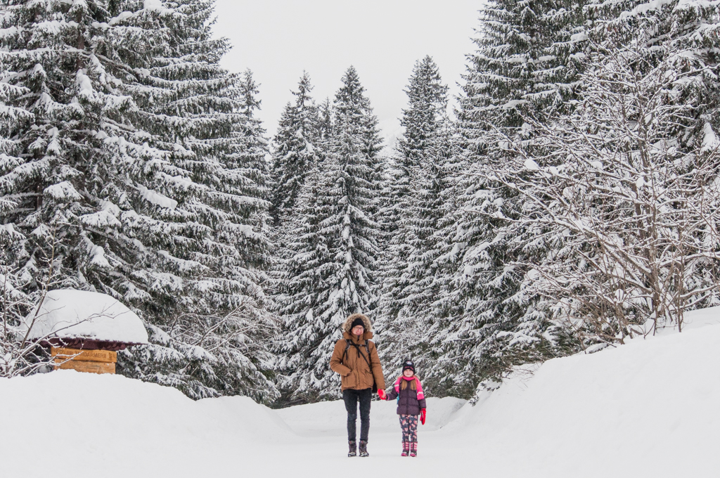 Nasza mała towarzyszka, całą trasę do i z Morskiego Oka, dzielnie przeszła o własnych siłach. Większość dzieci, młodszych jak i starszych, była ciągnięta przez swoich rodziców na sankach lub noszona w nosidełkach. Od mijających nas turystów, słyszeliśmy wiele pozytywnych komentarzy, dotyczących Nikoli „mała daje czadu”, „ale dzielna”, „zasługuje na medal”. No pewnie, że mała dawała czadu! Idąc o własnych siłach i to jeszcze z plecakiem, który uparła się zabrać, a młodzież wyjeżdżała sobie na saniach. Oczywiście zostaliśmy zapytani i to niejednokrotnie przez Nikole, „dlaczego dorośli jadą saniami, a my nie?”
