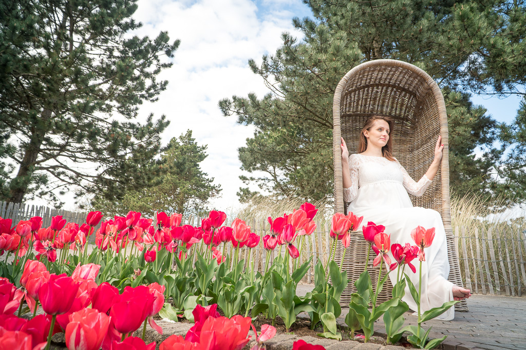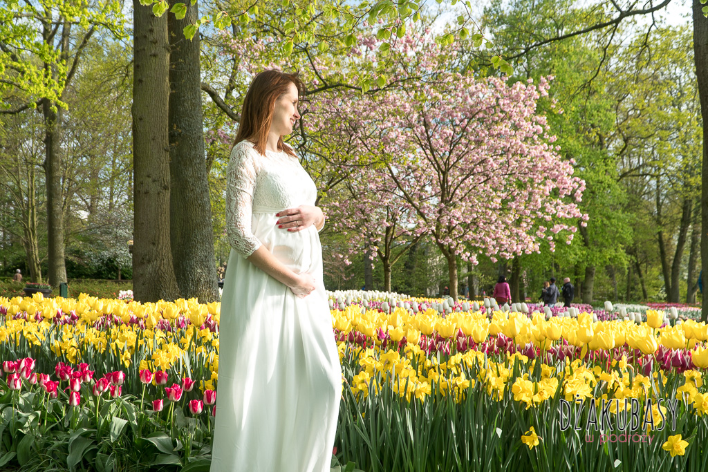 Po przejażdżce rowerowej stwierdziliśmy, że mamy wolne pół dnia i jeszcze raz możemy wejść zobaczyć Keukenhof. Po wejściu na teren ogrodu, zrobiło się bardzo przytulnie i dużo dużo cieplej, więc nie zastanawiając się wskoczyłam w sukienkę. Do zachodu słońca wiele czasu nam nie pozostało i musieliśmy się trochę spieszyć w poszukiwaniu fajnych miejsc na zdjęcia. Gdybyśmy wcześniej zaplanowali sesję i zapisali nasze pomysły, to wyszłoby to lepiej, My jak zwykle postawiliśmy na spontaniczność. Ważne że sukienka była w walizce :).